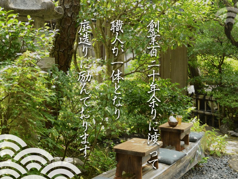 竹垣は古くから、日本の庭には欠かすことのできない要素として、目隠しや仕切りの目的に用いられてきました。竹垣には四ツ目(よつめ)垣、金閣寺垣、銀閣寺垣、建仁寺垣、大徳寺垣、龍安寺垣、桂垣、松明垣、御簾垣、大津垣、鉄砲垣、穂垣、光悦寺垣など、京都を代表する社寺仏閣の名称が付けられたものも多くあります。